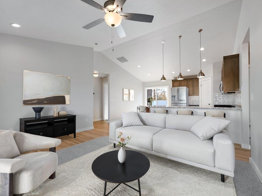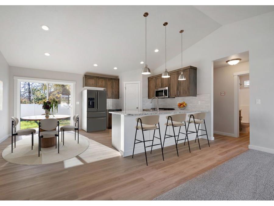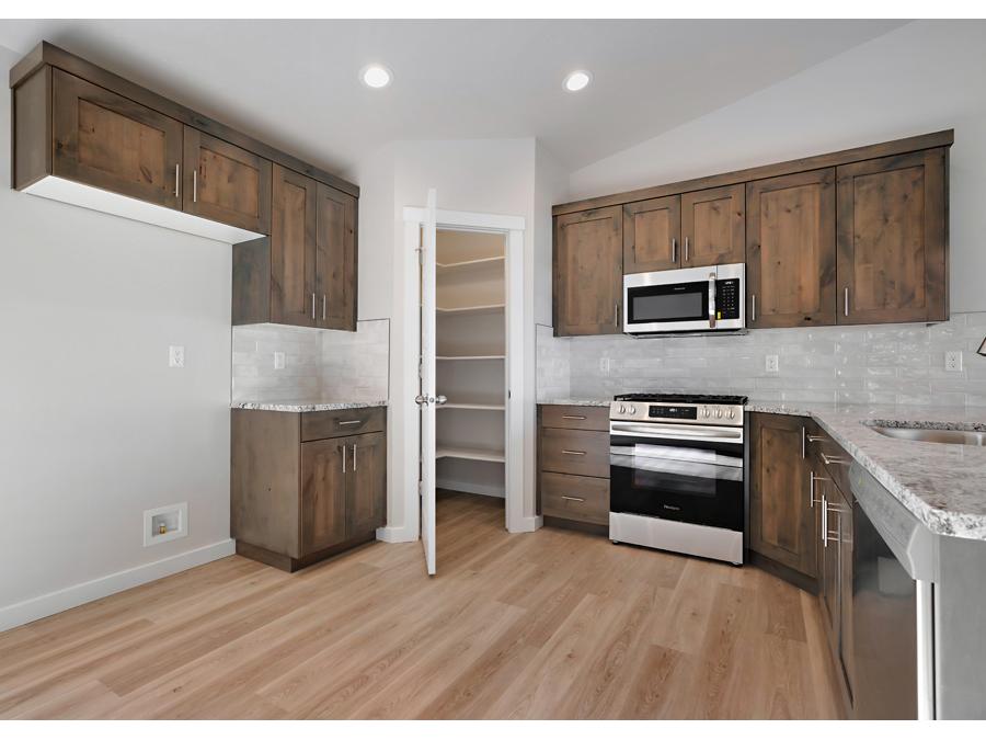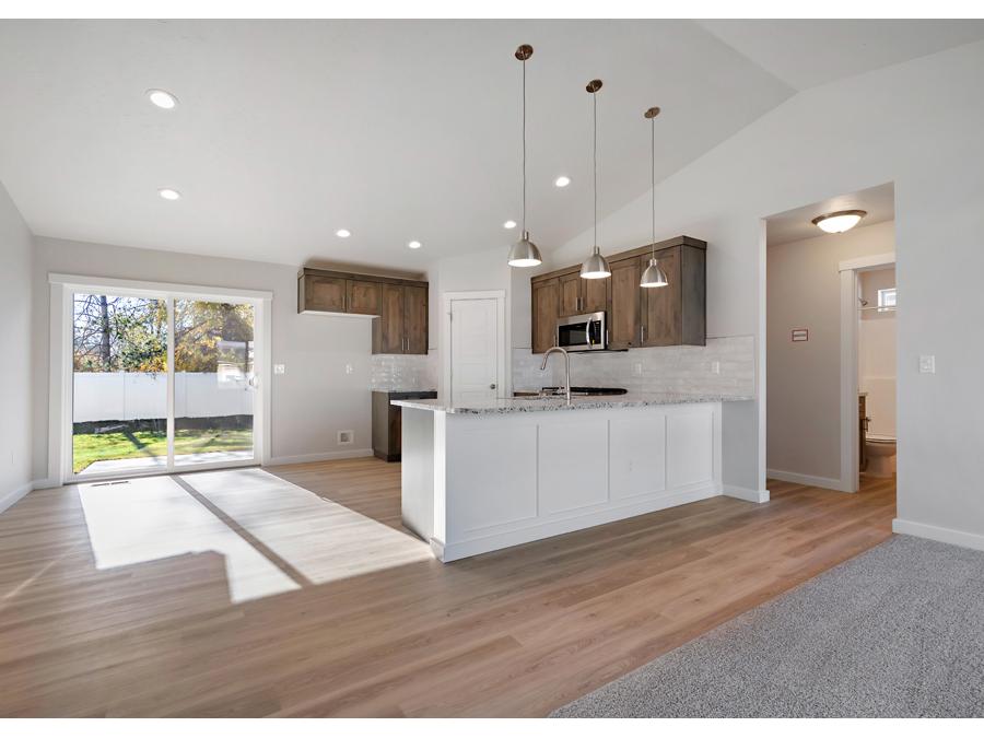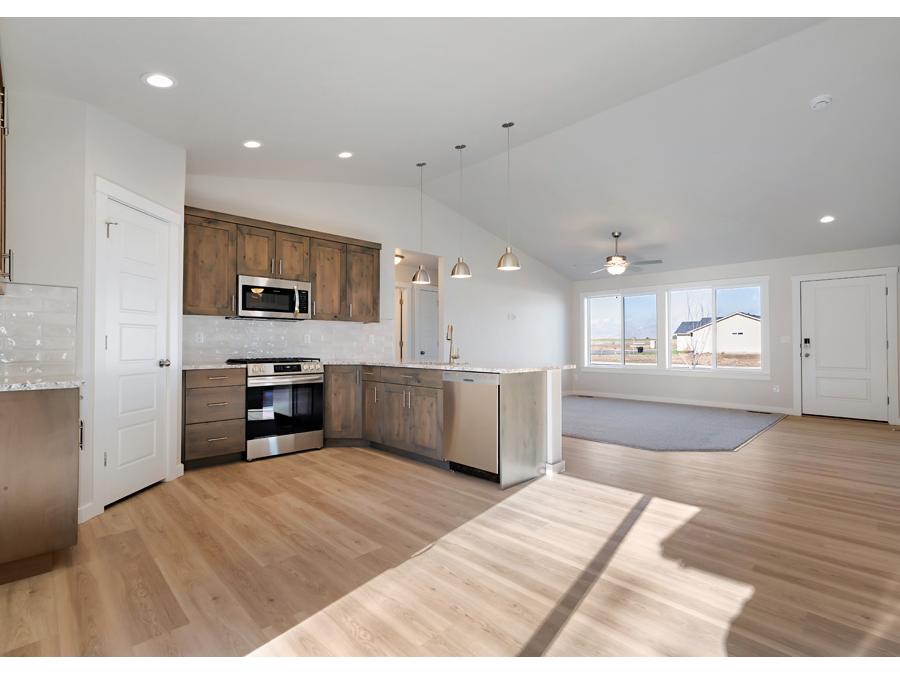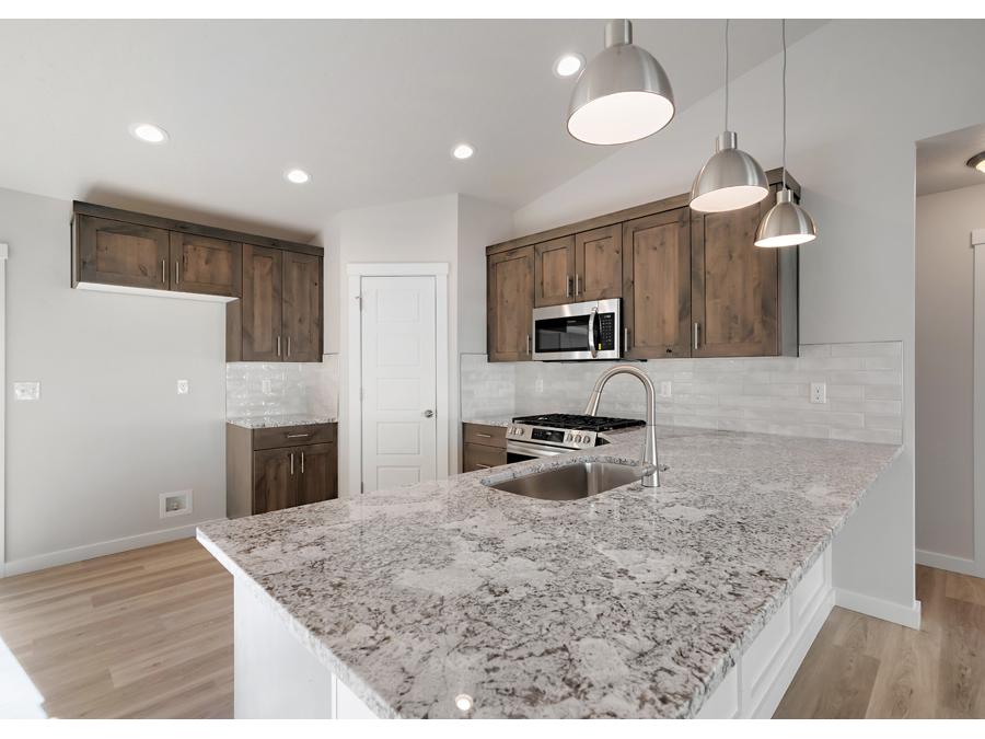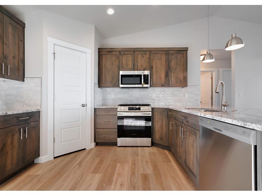 Enjoy this beautifully crafted home with a north-facing front yard featuring sod in both front and back, plus automatic sprinklers powered by pressurized irrigation—perfect for easy maintenance. Inside, the open-concept great room with vaulted ceilings creates a bright and welcoming space, ideal for gatherings. The kitchen is a chef’s dream, featuring granite countertops, a full tile backsplash, a gas range, and rich knotty alder cabinets that provide ample storage and timeless style. The sales price does not include the buyer's agent compensation. We are happy to add buyer's agent compensation to the sales price.   Photos Similar