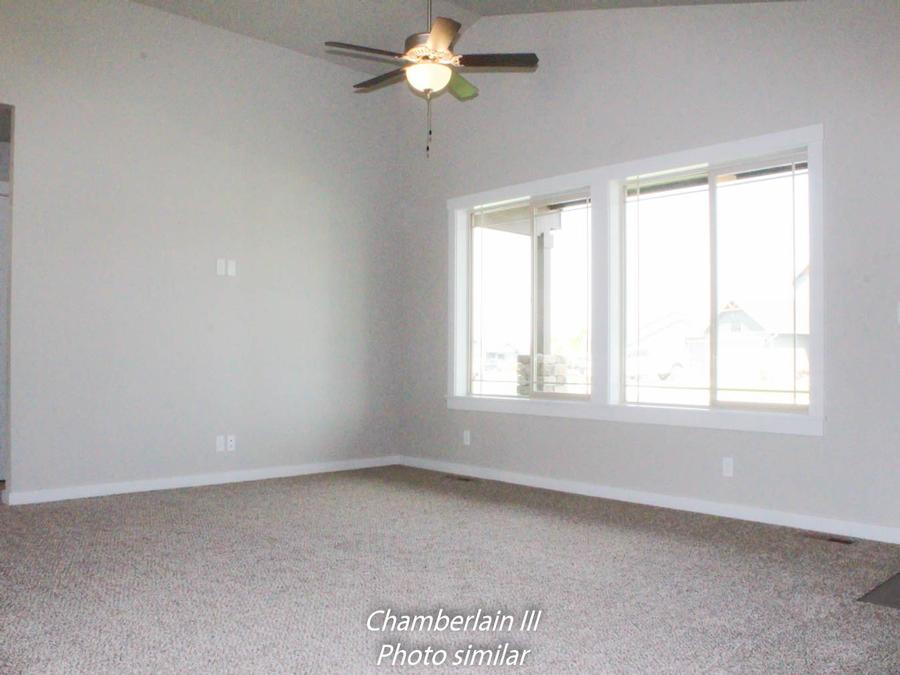 The Chamberlain, at 1,404 sq. ft., features three bedrooms, two bathrooms, a spacious kitchen and dining area, and a two-car garage. As you enter, you’re greeted by a cozy great room that sets the tone for the home. Beautiful granite countertops flow throughout the kitchen, which features Knotty Alder cabinets and stainless steel appliances. *Floorplan price is pre-lot.