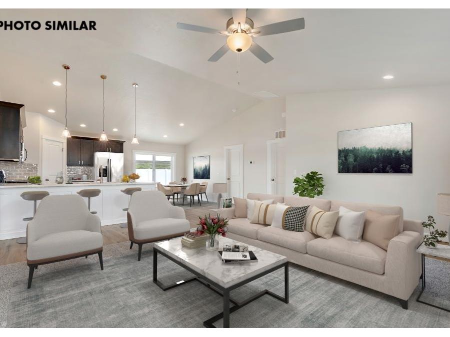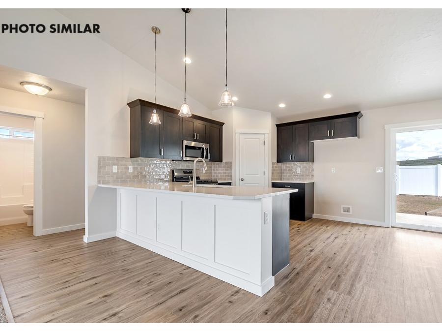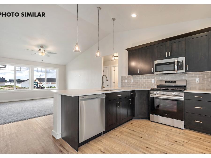 This brand new home features a popular floor plan in a sought-after neighborhood, offering the perfect blend of comfort and modern style. The open great room creates a welcoming space for gathering, while the kitchen stands out with quartz countertops and a convenient corner pantry. Outside, you’ll find a fully fenced yard with fresh sod, automatic sprinklers, and pressurized irrigation for easy upkeep. With natural gas and a spacious double-door two-car garage, this home is thoughtfully designed for everyday living and ready to enjoy from the moment you arrive. The sales price does not include the buyer's agent compensation. We are happy to add buyer's agent compensation to the sales price. Photos are similar