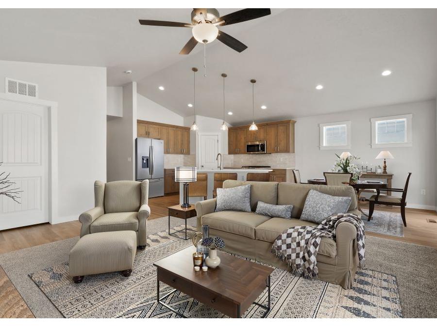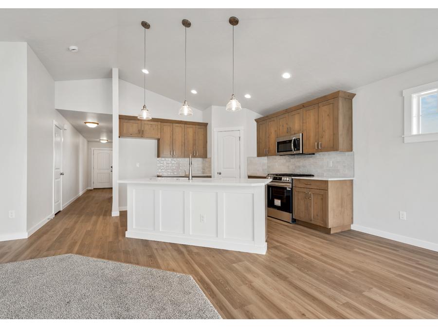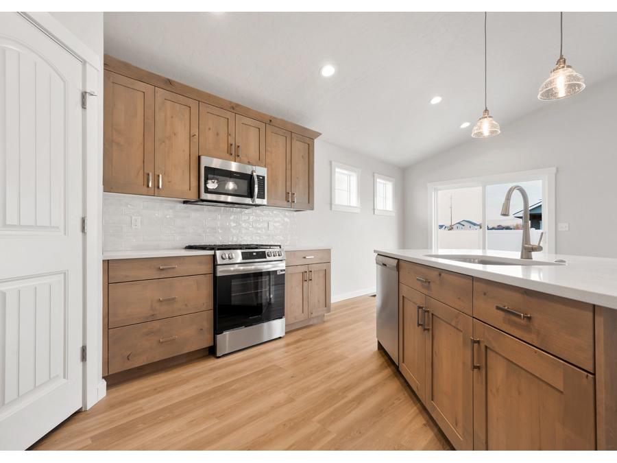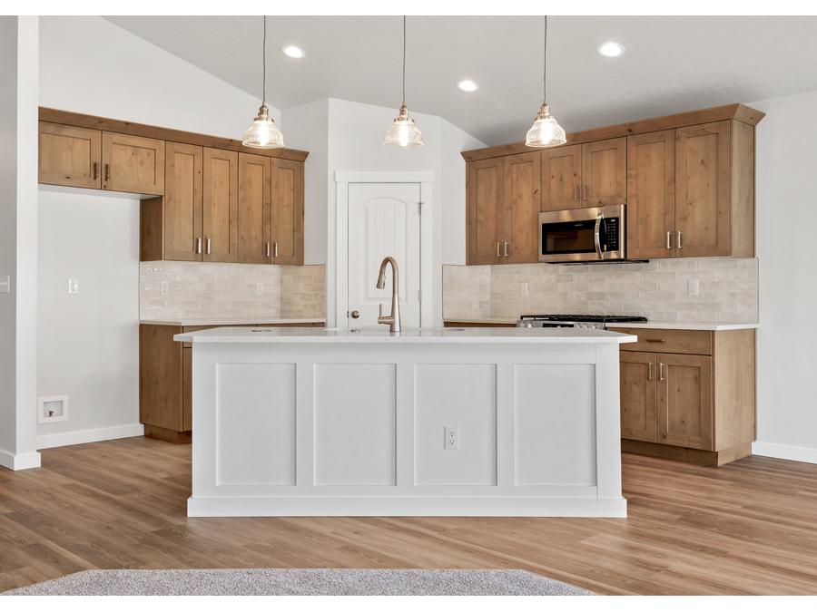 Step inside this beautifully crafted new home to discover knotty alder cabinets, quartz kitchen countertops, and a full tile backsplash, creating a stylish and functional culinary space. The open-concept great room offers the perfect setting for relaxing or entertaining. Enjoy the energy efficiency of a gas tankless water heater, along with the convenience of natural gas and pressurized irrigation. The sales price does not include the buyer's agent compensation. We are happy to add buyer's agent compensation to the sales price.