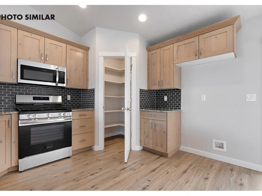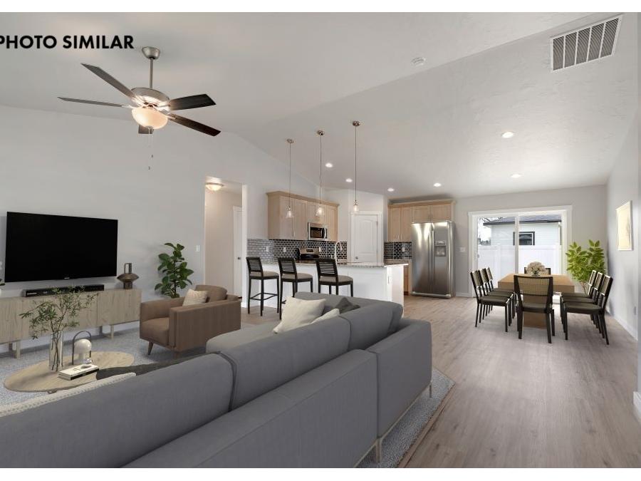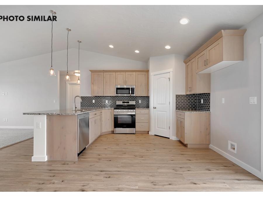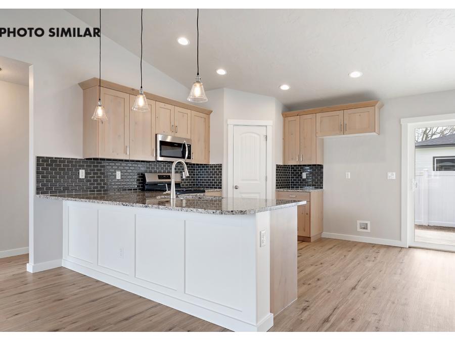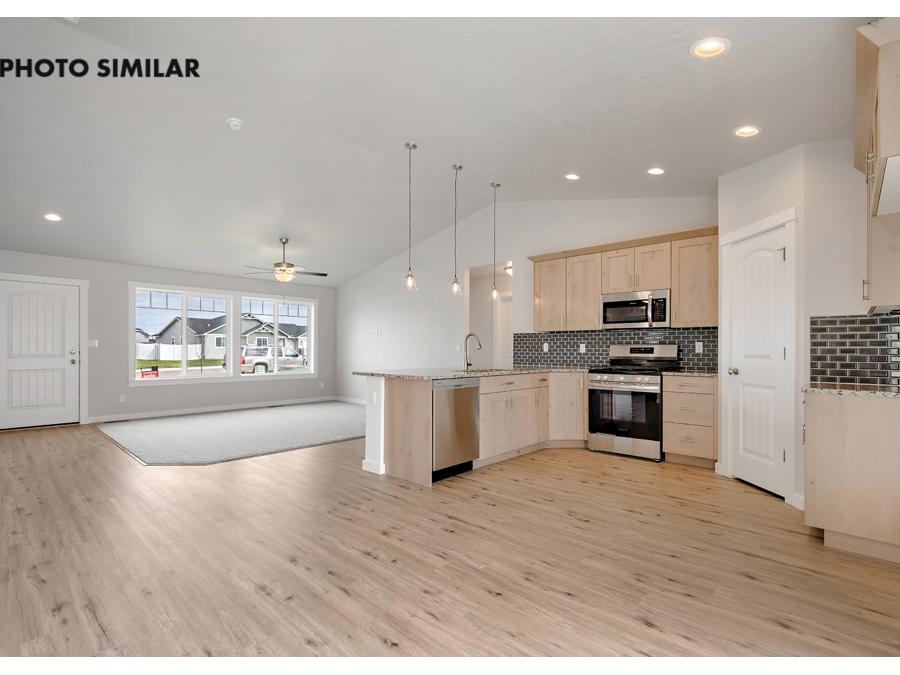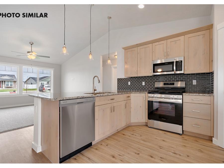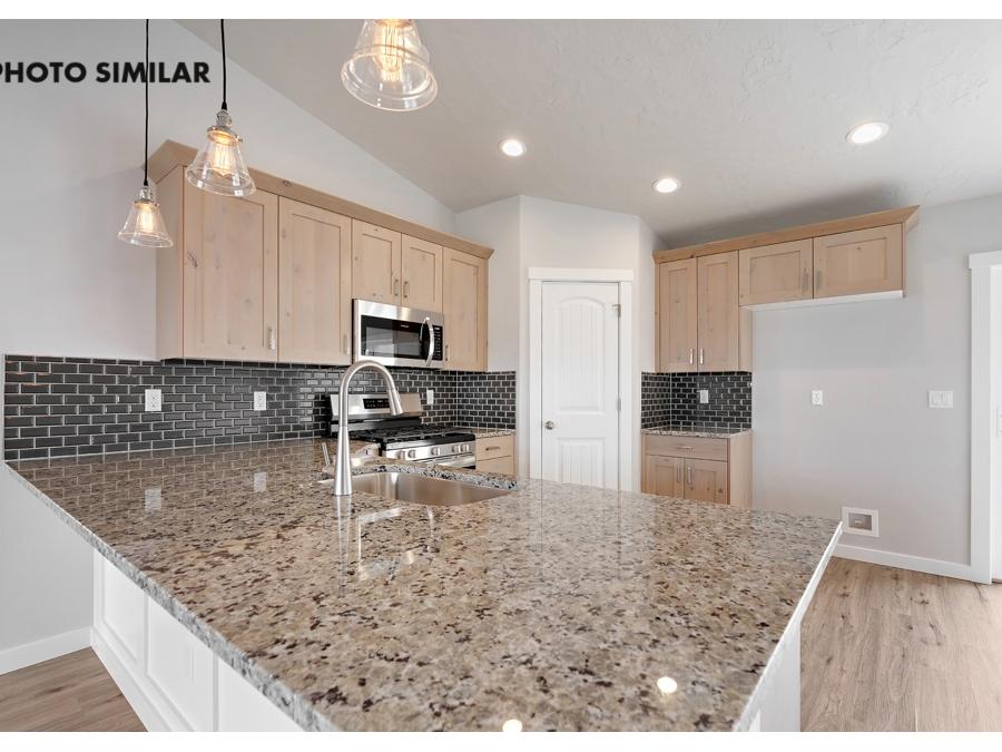 This thoughtfully designed home offers a warm, inviting feel with a spacious great room that’s perfect for everyday living and entertaining. The kitchen features beautiful granite countertops, a full tile backsplash, and knotty alder cabinets that add both style and character. Step outside to a fully fenced yard with fresh sod, automatic sprinklers, and pressurized irrigation, making maintenance easy. With natural gas and a double-door two-car garage, this home combines comfort, efficiency, and convenience in a great neighborhood.The sales price does not include the buyer's agent compensation. We are happy to add buyer's agent compensation to the sales price. Photos are similar