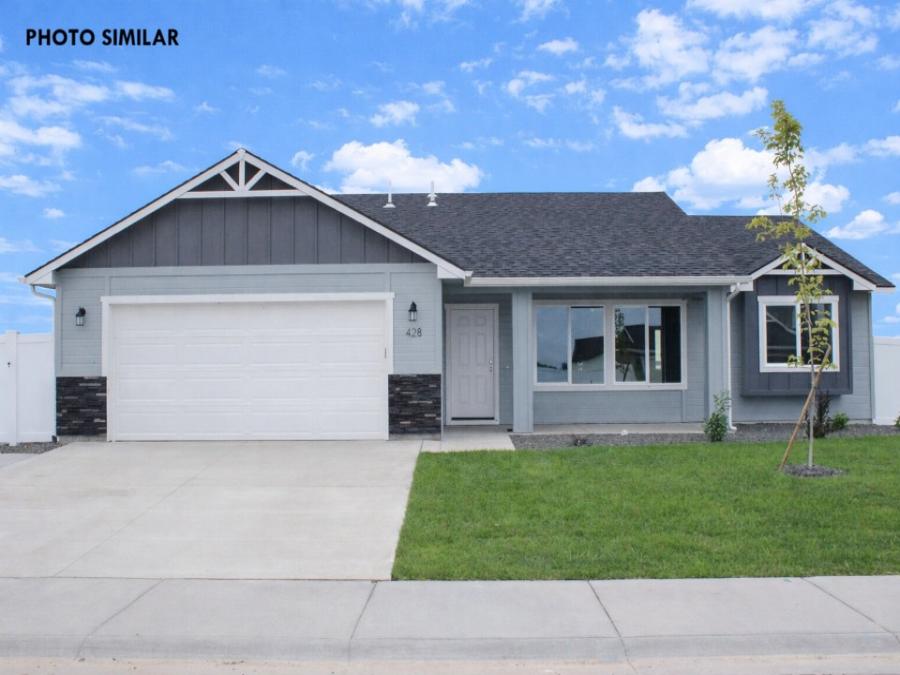 Welcome to this charming new construction, featuring a spacious great room and beautiful kitchen with quartz countertops and warm knotty alder cabinets. Enjoy low-maintenance living with front and rear sod, full automatic sprinklers in both yards, and pressurized irrigation. The 2-car garage provides ample storage, while full rain gutters and natural gas add to the home's practicality and efficiency. The north-facing backyard offers a shady retreat—ideal for summer afternoons. The sales price does not include the buyer's agent compensation. We are happy to add buyer's agent compensation to the sales price. Photos are similar