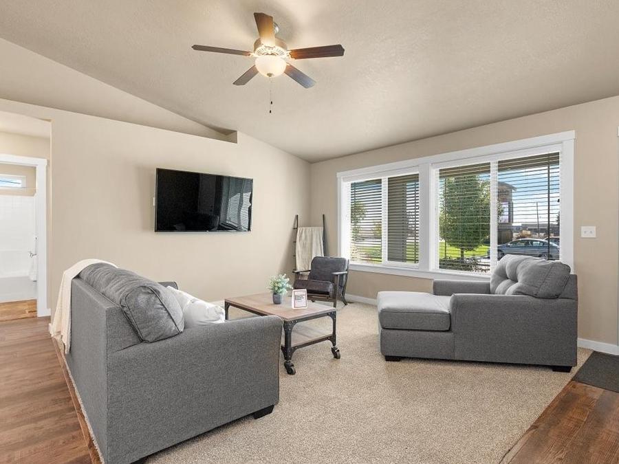 This beautiful home offers a desirable split-bedroom layout that provides comfort and privacy. The kitchen is thoughtfully designed with knotty alder cabinets, a full tile backsplash, and granite countertops, creating a warm and inviting space. Outside, you'll enjoy front and rear sod with full automatic sprinklers, along with a south-facing backyard that brings in wonderful natural light. Natural gas and pressurized irrigation provide valuable energy and cost savings year-round. The sales price does not include the buyer's agent compensation. We are happy to add buyer's agent compensation to the sales price. Photos Similar