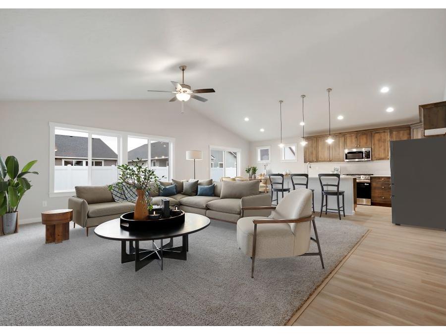 Spacious and thoughtfully designed floor plan featuring a modern kitchen with quartz countertops, a walk-in pantry, and a gas range. Enjoy the inviting great roomand thoughtful touches throughout—including walk-in closets in all bedrooms and dual vanities in the primary bathroom.Step outside to a south-facing backyard, perfect for enjoying sunshine year-round. Additional features include a 3-car garage, full gutters, automatic sprinklers, fully landscaped with pressurized irrigation for easy lawn maintenance.The sales price does not include the buyer's agent compensation. We are happy to add buyer's agent compensation to the sales price.