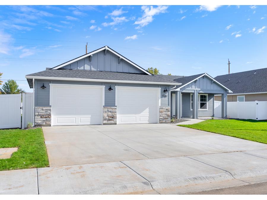 Welcome to The Shoshone, a client favorite that blends comfort and functionality. Located in a highly sought-after new subdivision, this brand-new home features a spacious 2-car garage, a large walk-in pantry, and a well-appointed utility room. The kitchen is a true highlight, showcasing a large island with stunning quartz countertops—perfect everyday living and entertaining.Additional amenities include natural gas and pressurized irrigation for added convenience and efficiency. The sales price does not include the buyer's agent compensation. We are happy to add buyer's agent compensation to the sales price.