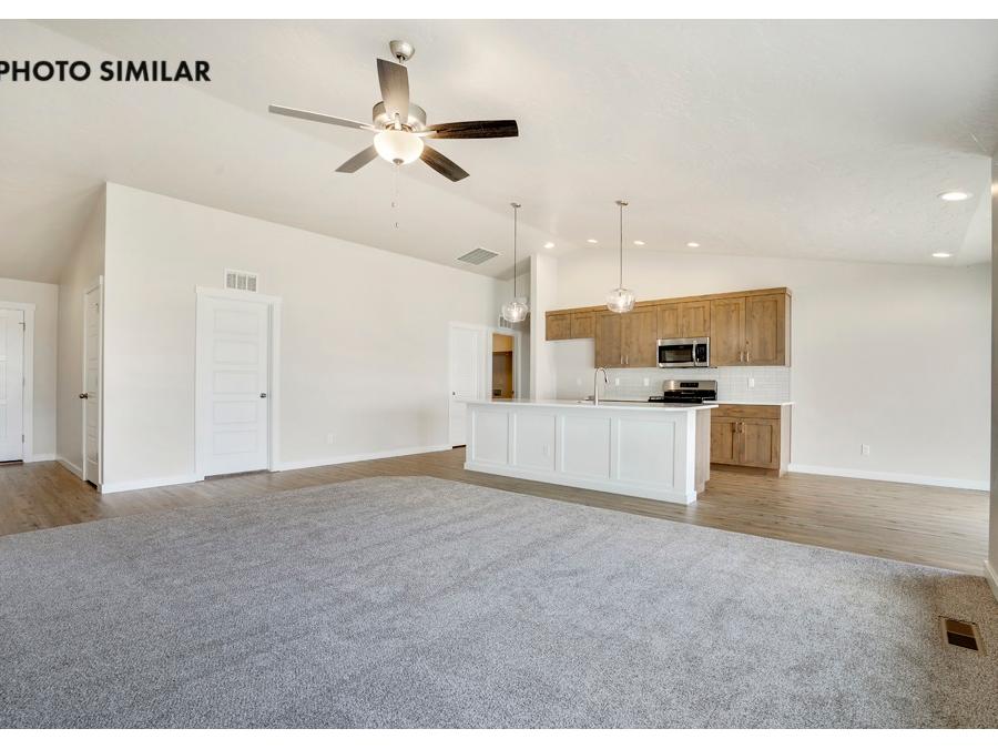 The popular Shoshone plan offers a thoughtfully designed open-concept layout centered around a stunning kitchen. Highlights include a large center island, walk-in pantry, elegant granite countertops, a full designer tile backsplash, and beautifully crafted knotty alder cabinetry. The spacious great room provides the perfect setting for both everyday living and entertaining. Outside, enjoy a fully landscaped yard with front and rear sod, pressurized irrigation, and a complete automatic sprinkler system. Additional features include natural gas and a desirable north-facing backyard. The sales price does not include the buyer's agent compensation. We are happy to add buyer's agent compensation to the sales price. Photos are similar